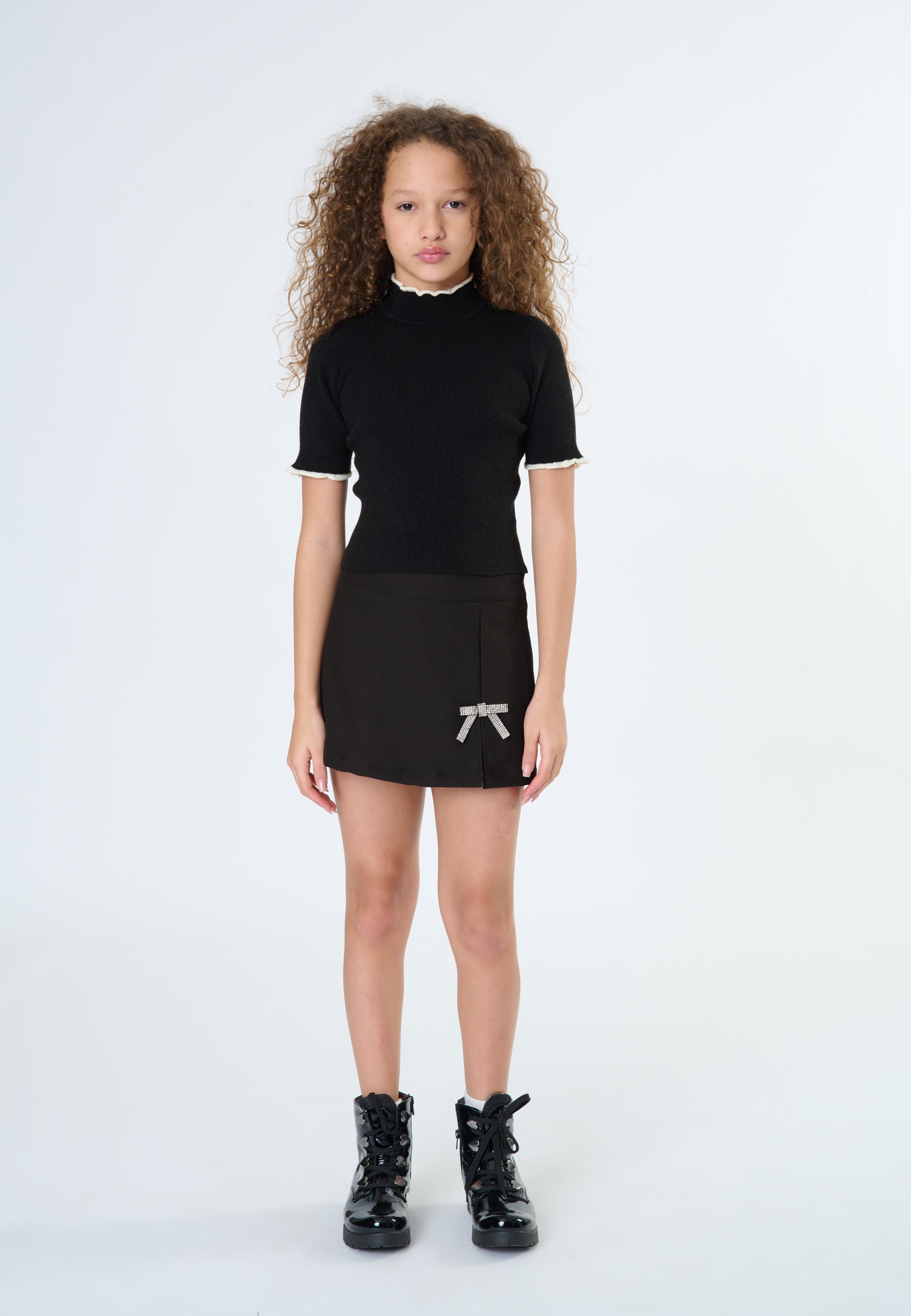 Maglia ragazza con fiocco jacquard